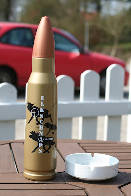 I samband med en snabbvisit i Flensburg (en tysk stad på gränsen till Danmark, alltså) inhandlades snapsen på bilden nedan. Givetvis som en gåva till Leif, han gillar ju sprit och vapen. Nu är det måhända ingen bra idé att kombinera just sprit och vapen, men Leif är ju känd för att kombinera sprit med olämpligheter.